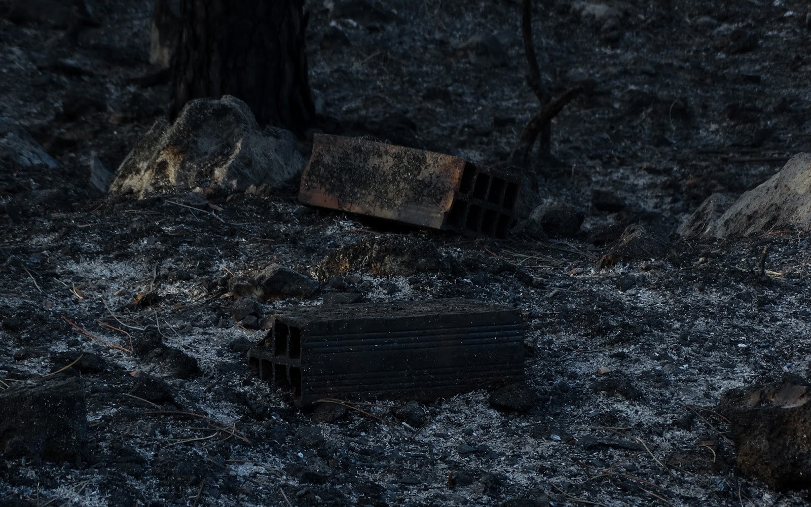 de cinzas. O fogo parece estar mais controlado, mas ainda existe muito pó no ar,